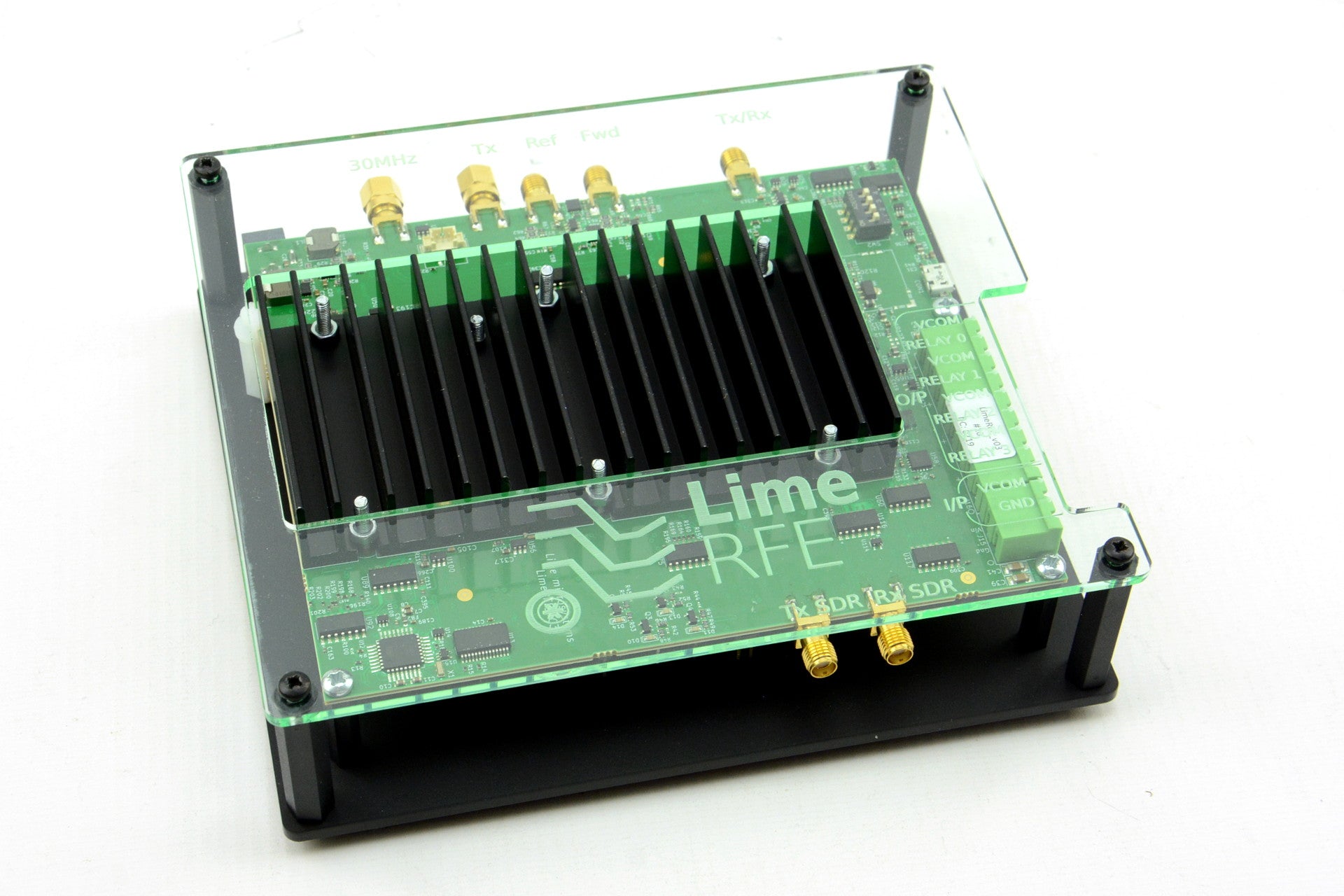 Lime RF Front-End (LimeRFE) is an open hardware RF front-end module with support circuitry to augment the LimeSDR family of boards and LimeNET Micro, providing a complete solution that addresses applications ranging from amateur radio to standards-compliant cellular networks.